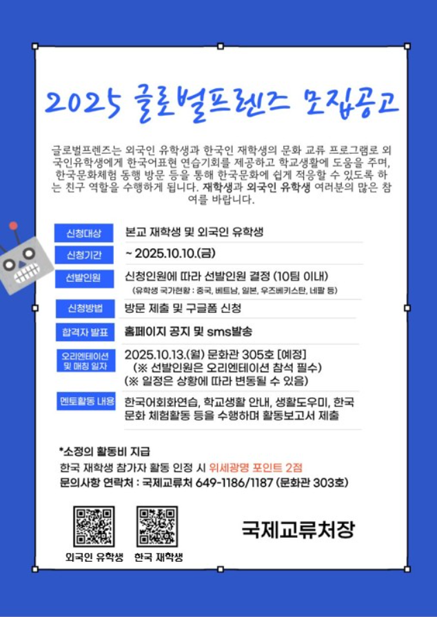 [국제교류처] 2025년 글로벌 프렌즈 모집