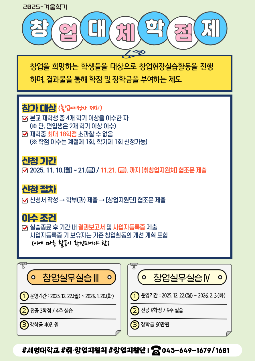 [취창업처] 2025-겨울학기 계절제 창업대체학점제 참가자 모집