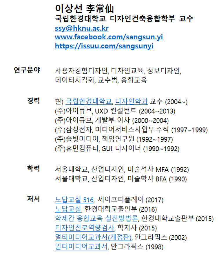 본문 시작 홈으로 시영소식 학과소개 학과과정 시영소식 입학/취업 AI 학과자랑 SNS소통 홈페이지가이드 학과행사 공지사항 학과행사 공모전 학생 인터뷰 학과행사 페이스북 트위터 프린트 시각실무체험 2022년도 학술특강 1 시각영상디자인학과 2781 2022-03-03 한경대 사용자경험 디자인산학협력 사례 일시 : 2022년 3월 15일 11시 디자인관 501호 이상선 교수님 (국립 한경대 디자인학과) 목록 이전강원랜드 하이원 사인시스템 특강 다음 (특강)병원의 서비스디자인 어떻게 시작할까? 연세대학교 산업디자인전공 이주명 교수님 담당부서 : 시각영상디자인학과 담당자 : - 연락처 : 043-649-1726 최종수정일 : 2024-10-26 만족도조사 만족도 조사 이 페이지에서 제공하는 정보에 대하여 만족하시나요? 매우만족 만족 보통 불만족 매우불만족
