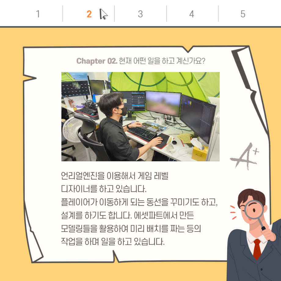 본문 시작 홈으로 입학/취업 학과소개 학과과정 시영소식 입학/취업 AI 학과자랑 SNS소통 홈페이지가이드 취업지금 입학여기 취업지금 전공소개 취업지금 페이스북 트위터 프린트 게임 레벨 디자이너 - 15학번 전상필 졸업생 시각영상디자인학과 2958 2023-07-31 목록 이전취업사례 중 대학원 진학 편 다음 행사대행사 기획자 - 17학번 김슬기 졸업생 담당부서 : 시각영상디자인학과 담당자 : - 연락처 : 043-649-1726 최종수정일 : 2024-10-26 만족도조사 만족도 조사 이 페이지에서 제공하는 정보에 대하여 만족하시나요? 매우만족 만족 보통 불만족 매우불만족
