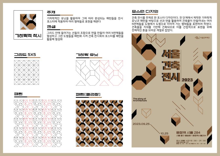 제2회 강원디자인전람회- 은상(문성빈학생: "도형으로 기하학 패턴을 활용한 건축 전시 포스터")