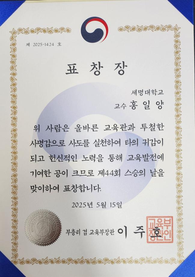 본문 시작 홈으로 학과자랑 학과소개 학과과정 시영소식 입학/취업 AI 학과자랑 SNS소통 홈페이지가이드 학과자랑 학과자랑 갤러리 공모전 동아리 졸업전시회 학과자랑 페이스북 트위터 프린트 교육부장관 표창장-홍일양교수님 시각영상디자인학과 1409 2025-06-07 홍일양 교수님께서 스승의 날을 맞이하여 교육분야에서 교육발전에 기여한 공을 인정받으시어 교육부장관 표창장을 받으셨습니다. 교수님 축하드립니다. 목록 이전2024학년도 학위수여식- 인문대(7개 학과가 속한) 전체 수석 '박*빈'학생 다음 충북과기원, 2025 충청북도 생성형 AI그림 그리기 경진대회- 신희경교수님 대상 수상 담당부서 : 시각영상디자인학과 담당자 : - 연락처 : 043-649-1726 최종수정일 : 2024-10-26 만족도조사 만족도 조사 이 페이지에서 제공하는 정보에 대하여 만족하시나요? 매우만족 만족 보통 불만족 매우불만족