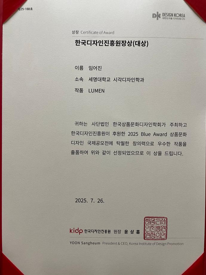 본문 시작 홈으로 학과자랑 학과소개 학과과정 시영소식 입학/취업 AI 학과자랑 SNS소통 홈페이지가이드 학과자랑 학과자랑 갤러리 공모전 동아리 졸업전시회 학과자랑 페이스북 트위터 프린트 2025 블루어워드 국제공모전 - 대상 수상 (임*진 학생) 시각영상디자인학과 876 2025-09-04 대상 수상 축하합니다~ 목록 이전2025학년도 후기(순수외국인) 경희대학교 일반대학원 박사과정 합격 - 이* 학생 다음 2025 자기설계 해외배낭연수 - 시각영상디자인학과 3명(합격) 참여 담당부서 : 시각영상디자인학과 담당자 : - 연락처 : 043-649-1726 최종수정일 : 2024-10-26 만족도조사 만족도 조사 이 페이지에서 제공하는 정보에 대하여 만족하시나요? 매우만족 만족 보통 불만족 매우불만족