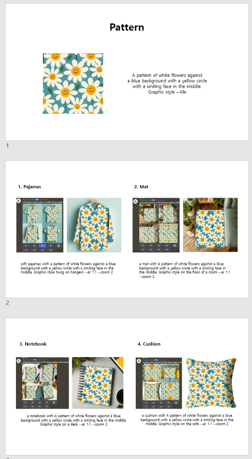 본문 시작 홈으로 AI 학과소개 학과과정 시영소식 입학/취업 AI 학과자랑 SNS소통 홈페이지가이드 AI 콘텐츠 연구소(AI 디자인) 디자인 정보 AI 콘텐츠 연구소(AI 디자인) AI 콘텐츠 연구소(AI 디자인) 페이스북 트위터 프린트 2024년 1학기 모듈 생성 AI 일러스트레이션 - 패턴, 굿즈 시각영상디자인학과 1349 2024-09-08 타일 기능을 활용하여 사방연속 패턴 제작 후, 이를 Zoom 기능/ Remix 기능을 활용하여 굿즈 제작 평소의 1/10 속도로 제작가능하였습니다. 허유빈, 이정동 신유빈 홍주영 목록 이전2024년 1학기 모듈 생성AI일러스트레이션 수업 - 포스터 다음 2023년도 AI 수업 우수 결과물 만족도조사 만족도 조사 이 페이지에서 제공하는 정보에 대하여 만족하시나요? 매우만족 만족 보통 불만족 매우불만족