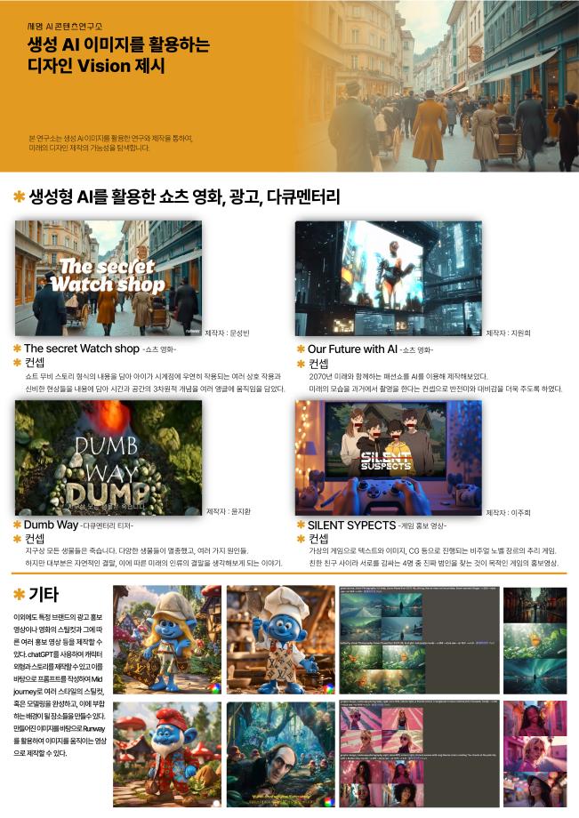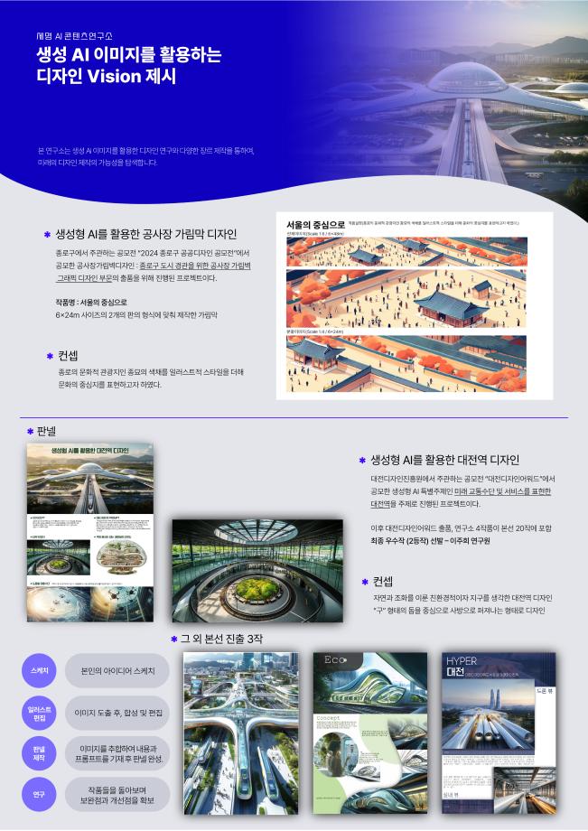 본문 시작 홈으로 AI 학과소개 학과과정 시영소식 입학/취업 AI 학과자랑 SNS소통 홈페이지가이드 AI 콘텐츠 연구소(AI 디자인) 디자인 정보 AI 콘텐츠 연구소(AI 디자인) AI 콘텐츠 연구소(AI 디자인) 페이스북 트위터 프린트 세명 AI 콘텐츠 연구소 - AI art & Design 시각영상디자인학과 838 2025-03-17 세명 AI 콘텐츠 연구소 소속 연구원들이 AI art & Design 전시회를 위해 만든 작업물입니다. 목록 이전세명 AI 콘텐츠 연구소 - 세명 콘텐츠스쿨(SMCS) 가을 정기 전시회 다음 세명 AI 콘텐츠 연구소 - AI art & Design 전시회 만족도조사 만족도 조사 이 페이지에서 제공하는 정보에 대하여 만족하시나요? 매우만족 만족 보통 불만족 매우불만족