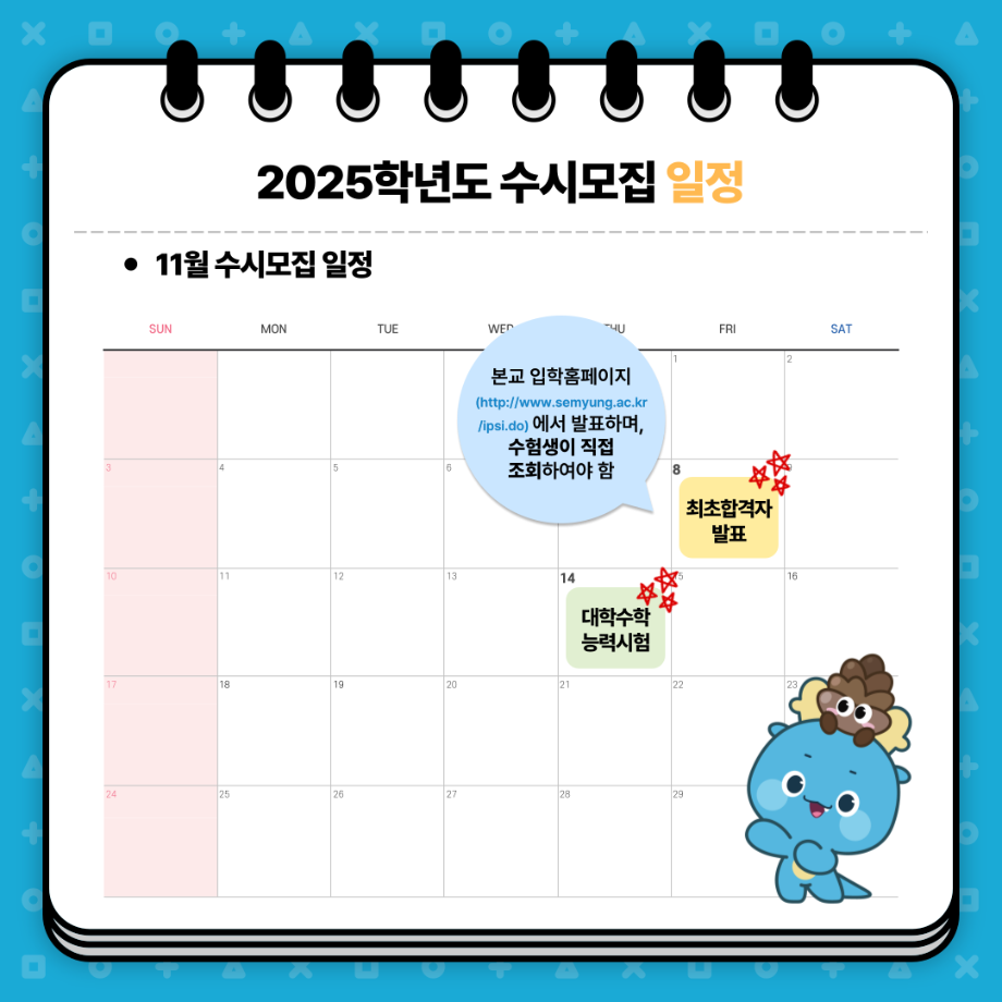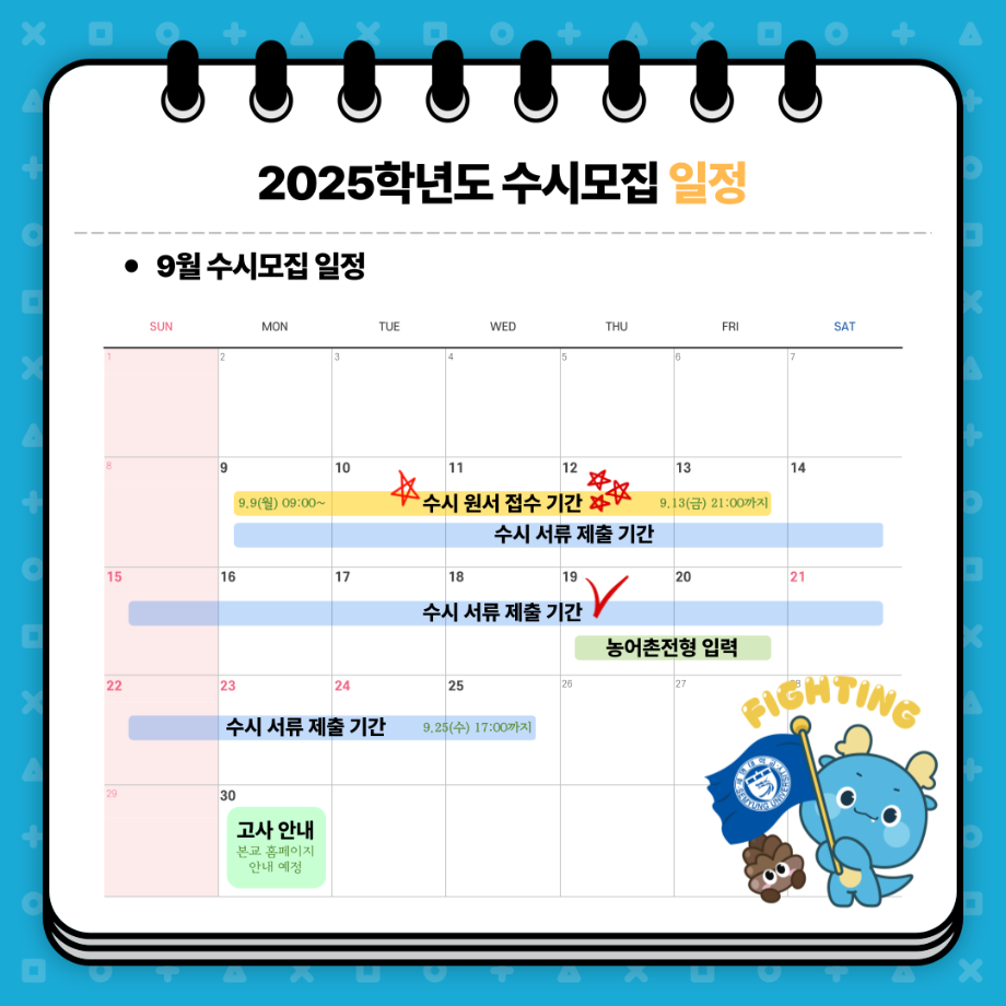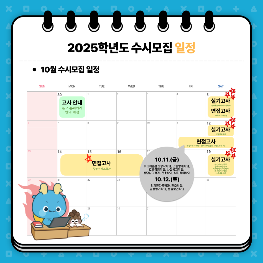 본문 시작 홈으로 입학/취업 학과소개 학과과정 시영소식 입학/취업 AI 학과자랑 SNS소통 홈페이지가이드 입학여기 입학여기 취업지금 전공소개 입학여기 페이스북 트위터 프린트 2025 수시모집 주요사항 시각영상디자인학과 1494 2024-08-20 2025 수시모집 주요사항 목록 이전지식인 학과 답변 ->Q.시각디자인과 배우는것 다음 추석인사와 2025학년도 수시 모집 안내 만족도조사 만족도 조사 이 페이지에서 제공하는 정보에 대하여 만족하시나요? 매우만족 만족 보통 불만족 매우불만족