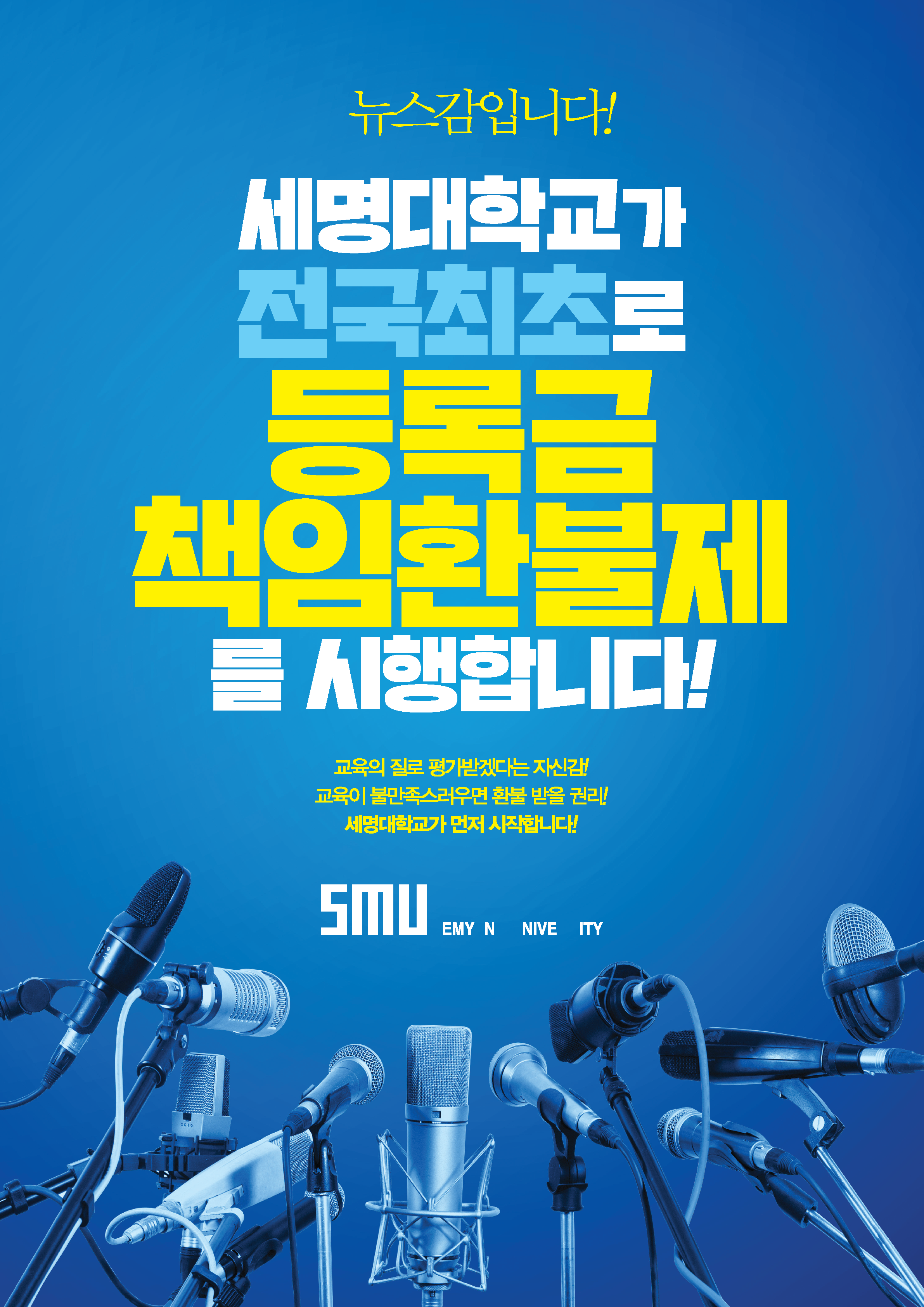 본문 시작 Media SMU 세명소개 입학/취업 대학/대학원 학사지원 대학생활 연구/산학 기관/시설 SMU Story 소통·공감 학교기업 홈페이지가이드 홍보포스터 News@SMU 공지사항 보도자료 Media SMU 민송백일장 해카톤 경진대회 홍보포스터 페이스북 트위터 프린트 2025년 포스터 다운로드 2025년 포스터 다운로드 2024년 포스터 다운로드 2024년 포스터 다운로드 2023년 포스터 다운로드 2023년 포스터 다운로드 담당부서 : 홍보센터 담당자 : 홍보센터 연락처 : 043)649-1175 최종수정일 : 2025-07-03 만족도조사 만족도 조사 이 페이지에서 제공하는 정보에 대하여 만족하시나요? 매우만족 만족 보통 불만족 매우불만족